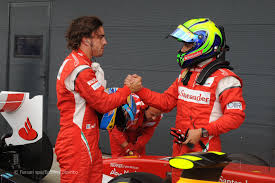 O companheiro de equipe: Na Sauber, seu companheiro inicialmente era Nick Heidfeld, que na temporada 2002, conseguiu a melhor colocação da equipe: um quarto lugar. No ano seguinte, Massa foi substituído por Heinz-Harald Frentzen, que era o melhor piloto que a Sauber já teve. Mas ele não consegue repetir o seu bom desempenho e Felipe retorna. Ele passa a ter a companhia de Giancarlo Fisichella, piloto que havia vencido o GP do Brasil de 2003. Os dois formaram uma boa dupla e conquistaram 34 pontos, com “Fisico” tendo 22 e Massa 12. O bom desempenho de Fisichella o leva para a Renault e em seu lugar entra Jacques Villeneuve, filho do grande Giles Villeneuve, e campeão da temporada de 1997. Os dois entraram em conflito, mas desta vez, o brasileiro levou vantagem. Na Ferrari, Massa começou como segundo piloto, com o supercampeão Michael Schumacher de companheiro de equipe. Os dois ficaram juntinhos até Schumi se aposentar e Massa herdar o posto de primeiro piloto e ter o finlandês Kimi Raikkonen como companheiro de equipe. Em 2007, Raikkonen só ganhou depois que a Ferrari mandou Massa dar passagem para ele. Em 2008, Raikkonen não foi muito bem, e viu Felipe ser quase-campeão. Até que ele saiu e entrou em seu lugar o exigente, ousado e decidido espanhol Fernando Alonso, que dizem ser melhor do que Michael Schumacher. Alonso logo se impôs e fez o brasileiro recolher sua juba e ficar pra escanteio, vendo o espanhol tentar repetidas vezes ser campeão e mandar sua equipe mandar o Felipe lhe dar passagem, pois ele era o cara e pronto. Aí Massa cansou e se mandou, apostando na superação da Williams. Ele era o primeiro piloto, deveria disputar todas as corridas, participar de todos os treinamentos, enfim, era a vez dele ser O cara. Mas não foi o que aconteceu. Outro finlandês atrapalhou a sua vida. Valtteri Bottas, 25 anos, está em sua segunda temporada pela Fórmula 1 e está vendo a sua estrela brilhar. Massa até tentou se impor um pouquinho, não dando passagem pro segundo piloto quando a equipe mandou, mas nem isso impediu Bottas de botar o Felipe pra escanteio outra vez. Aparentemente, ser companheiro de equipe de Felipe Massa dá muita sorte.